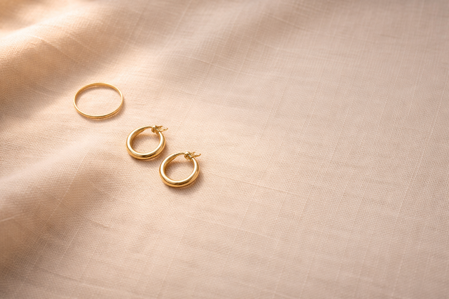 The latest additions to the GOLDÈRE collection. Minimalist gold rings and earrings crafted from surgical steel with 18K gold plating.